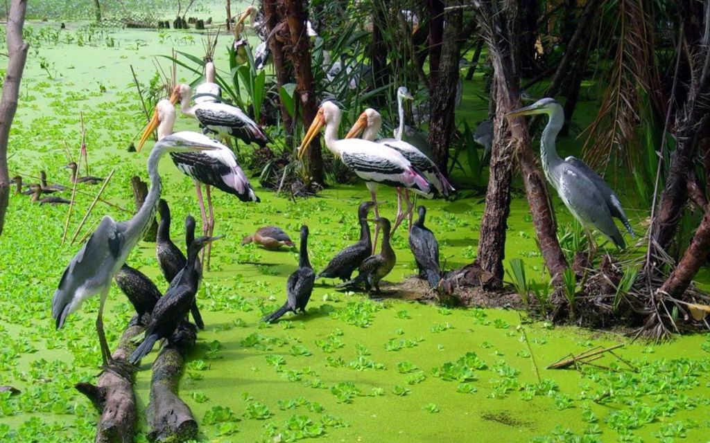 Living in the Sanctuary is a diversity of many water birds, mainly teal, stork, heron, night heron and cormorant. Coming to the garden, visitors will have chances to contemplate the beautiful sights of each flock of birds flying for food in the early morning and returning their nests in the Sanctuary in the evening while the night birds start their journeys. For many years passing by, the garden has been becoming a peaceful home where generations of birds are born, usually in the rainy season, and developed. There are currently some 40,000 birds and 5,000 nests, according to preliminary statistics. Birds mostly gather here during the rainy season between May and October.