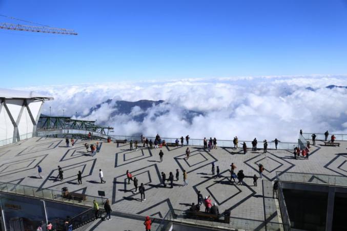 After stopping at the arrival station, visitors will take about 20 – 30 minutes to climb 600 more stone steps to the top Fansipang mountain, touching the milestone mark of Roof of Indochina.