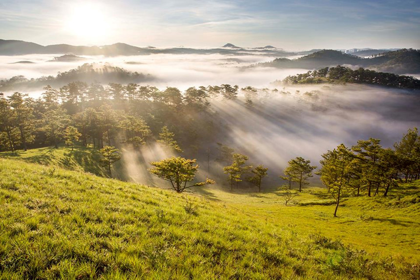 Travel Da Lat at this time you will admire the brilliant colors of wild sunflowers on the streets, along the hills is the pink of cherry blossoms or yellow colour of mimosa. Today, travelers to Da Lat not only to watch the scenery but also to enjoy the fresh air and feel the cold characteristic of Dalat in the late autumn.