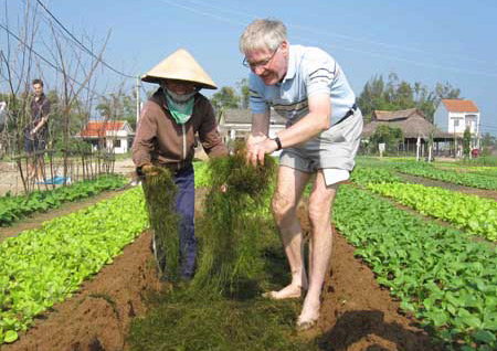 Visiting the vegetable garden at Tra Que Village