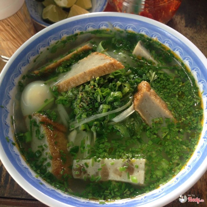 Banh canh is a kind of noodle in Vietnam, it is made from rice flour or finest flour, you can choose one of them or try both to feel the difference. As the name, chives is the main ingredient that make this food special and characteristic through its flavor. In addition, fresh fish cake in this beach region make the soup sweeter and tastier.