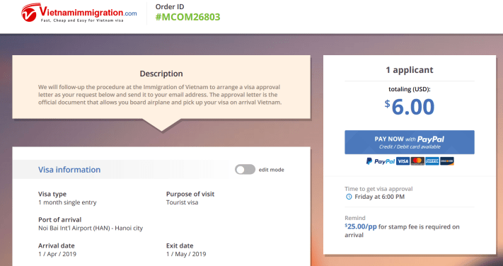 تأشيرة الدخول عند الوصول هي نوع من التأشيرات لدخول فيتنام. وهي مؤهلة لجميع الناس في جميع أنحاء العالم الذين يرغبون في زيارة فيتنام للأغراض السياحية والتجارية كذلك.  تسمح تأشيرة الدخول عند الوصول لحاملها بدخول فيتنام خلال شهر واحد أو ثلاثة أشهر أو ستة أشهر أو سنة كاملة مع الدخول لمرة واحدة أو الدخول المتعدد. تأشيرة الدخول عند الوصول رخيصة وسهلة للتقديم. لديها الكثير من المزايا التي لا تملتكها تأشيرة الدخول الإلكترونية.