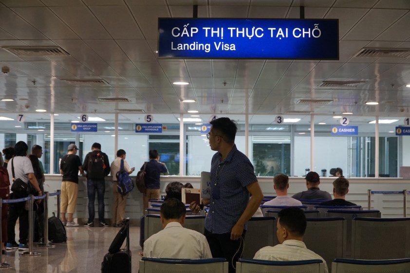 베트남 항공에서 차례가 되면 모니터에 나오거나 호명된다. 이때 발음이 부정확 할 수 있으니 잘 경청해야 된다. 여권과 비자타입이 맞는지 확인 후에 스템프비를 지불하면 된다.