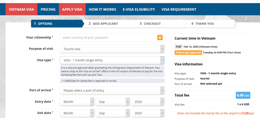 도착 비자를 받는 절차는 매우 간단하다. 하지만 베트남 이민국 (출입국 관리소)는 베트남 여행사를 통해서 도착 비자만 발급한다. 그래서 분은 베트남 여행사에 연락해야 한다. Viet Nam Immigration Services 는 이 분야에서 제일 회사이다. 합리적인 비용, 보증, 절약한 시간 때문이다. 한국이 아닌 베트남 현지에서 발급하기 때문에 실제 발급기간이나 절차는Viet Nam Immigration Services 웹사이트로 상담하시면 확실하게 알 수 있습니다.