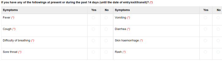 Requirements to fill out Vietnamese medical declaration form before entering Vietnam