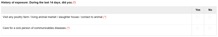 11/ Choose yes or no for medical declaration purpose