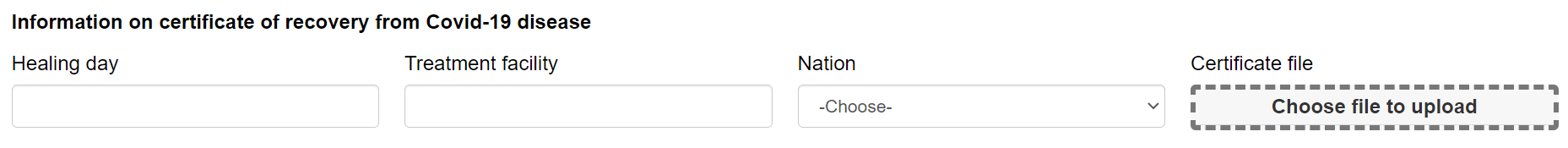 17/ Certificate of recovery from Covid-19: If you just recovered from Covid-19, you need to declare the date of recovery and certificate of recovery. If not, you don’t need to fill in this information.