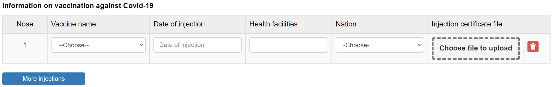 15/ Declare clearly about vaccine Covid-19 which you already took. If you have no vaccine, just leave it blank.