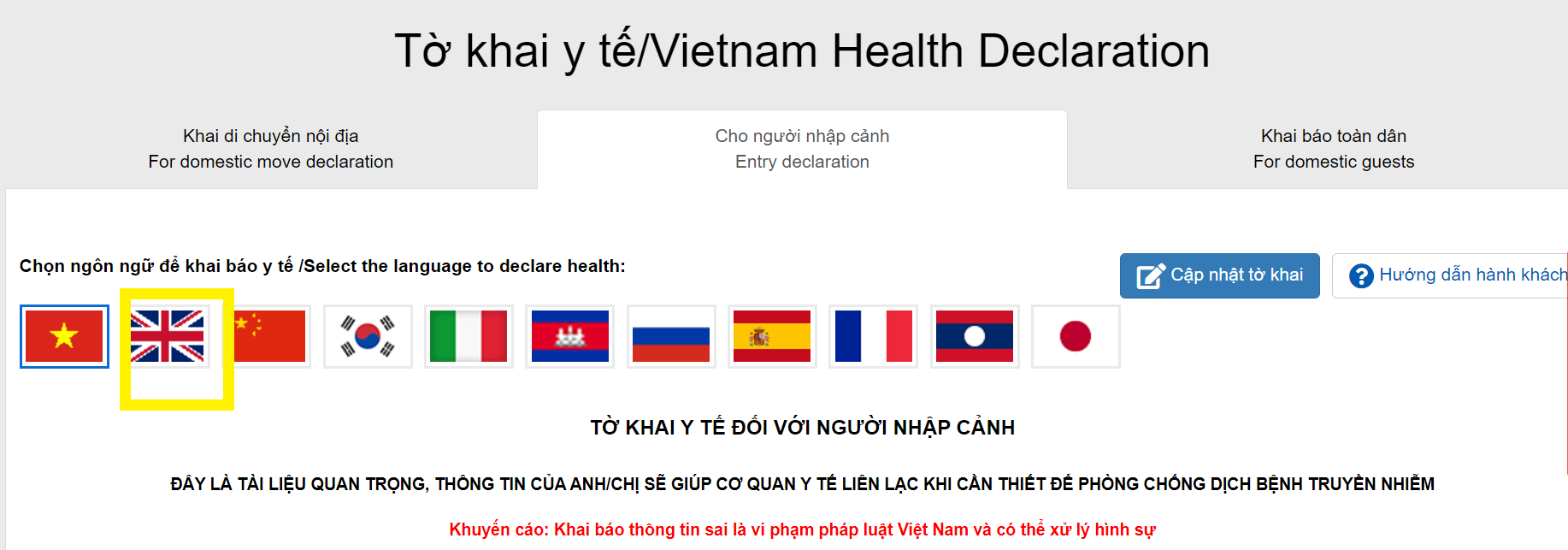 1/ click at tokhaiyte.vn to access the online medical declaration form